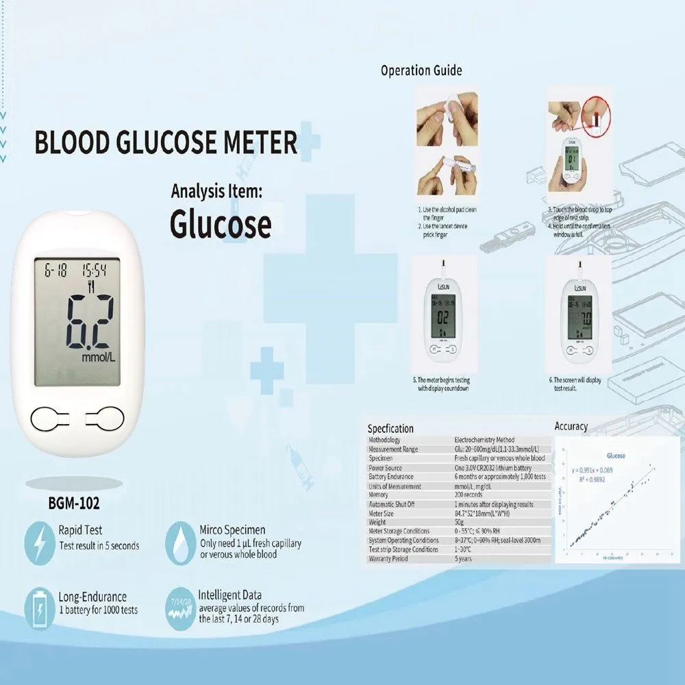 Lysun Blood Sugar Testing Machine Glucometer Meter Test Blood Sugar Machine
