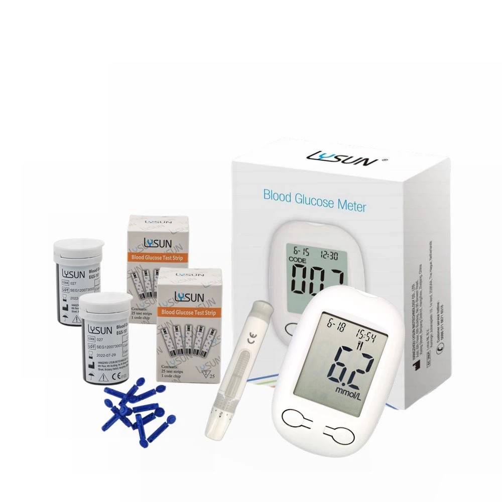 Main Features of Blood Glucose Monitoring System • Pre-suction siphon designed test strip, easy and convenient to use • 1μL tiny blood sample • Fast 5-second measuring time • Easy to read large LCD • Automatic 7, 14 & 30 day averages • Store up to 200 results with date and time