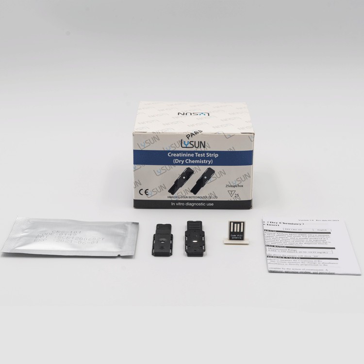 Creatinine is an important indicator of renal health because it is an easily measured by product of muscle metabolism that is excreted unchanged by the kidneys. Creatinine test strips are used in the diagnosis muscle diseases or various kidney diseases such as nephritis and renal insufficiency.